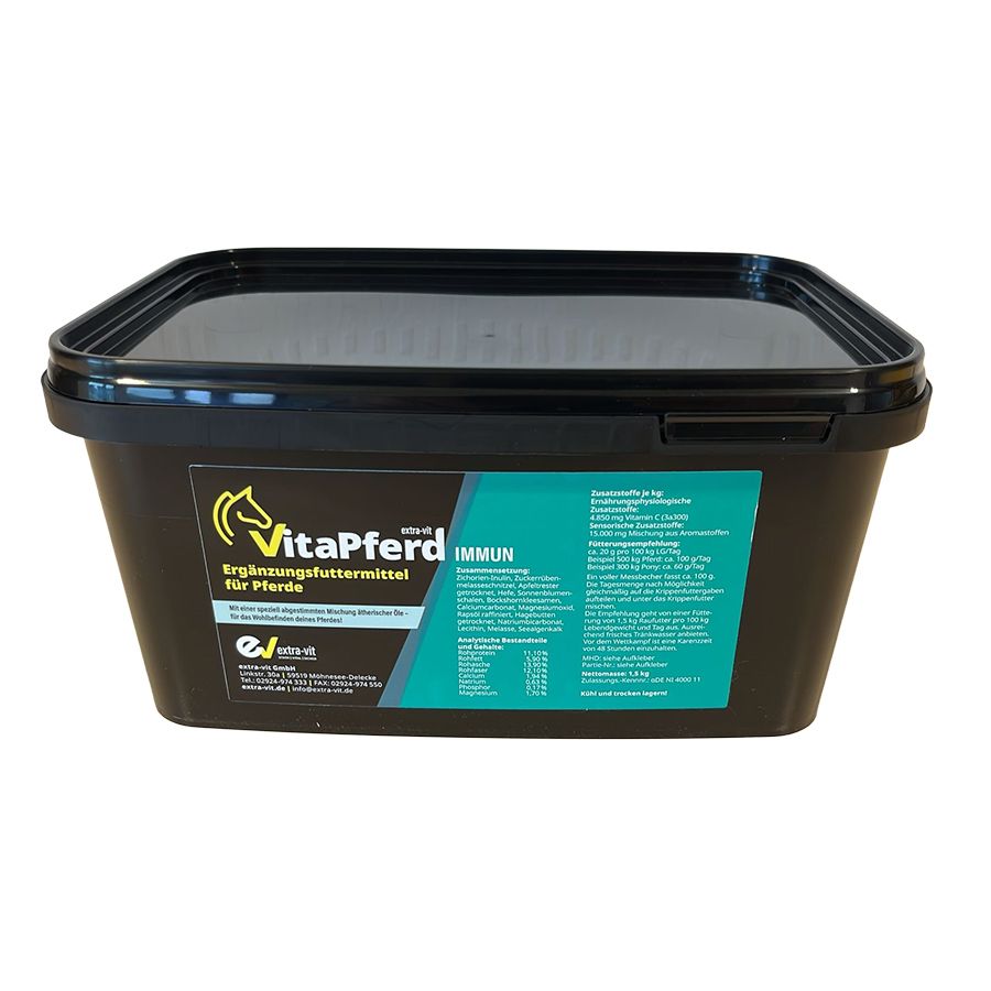 VitaPferd Immun ist ein Ergänzungsfuttermittel zur natürlichen Unterstützung des Immunsystems bei Pferden – ideal zur Vorbeugung oder zur Regeneration nach Krankheit, Stress oder Wetterumschwüngen.